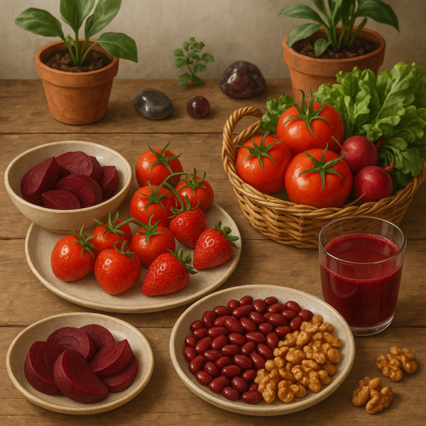 - Aliments rouges : Comme les betteraves, les tomates et les fraises.