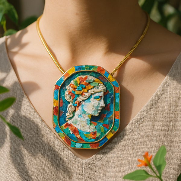 Dans la société actuelle, le camée s'est réinventé. On le retrouve dans des styles variés, allant du classique au moderne, et il est utilisé dans des collections de bijoux contemporains. Les créateurs d'aujourd'hui l'intègrent souvent dans des pièces d'exception, lui conférant une nouvelle vie tout en respectant son héritage.